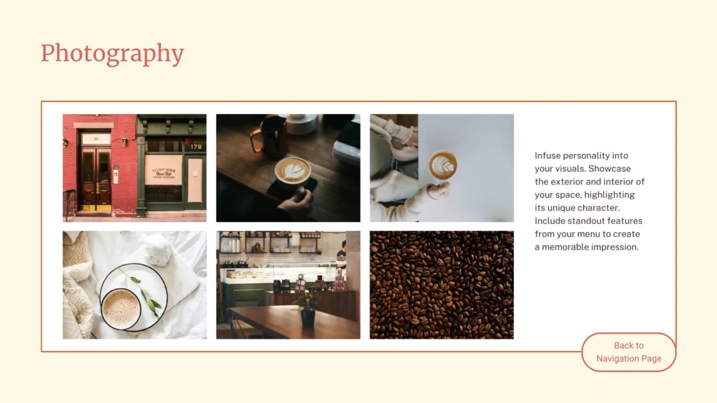 Direcția vizuală este modernă, dar cu influențe cozy și artizanale, inspirate din cultura cafelei de specialitate. Elementele grafice îmbină tonuri calde și texturi naturale, sugerând confort, autenticitate și atenție la detalii. Paleta cromatică transmite căldură, relaxare și rafinament.